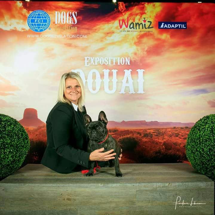TB tête, oreilles,yeux & couleur, narines bien ouvertes, B ligne de dos, petite queue présente, Poitrine bien descendue, B démarche et ligne de dos, Prognat important. 9Kg - 30,5cm